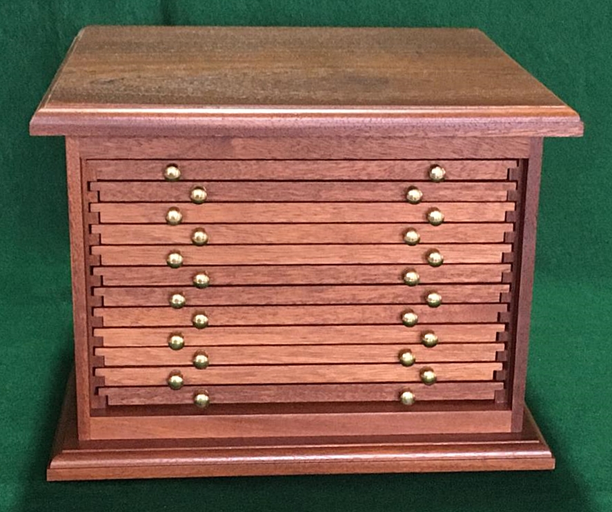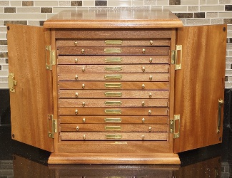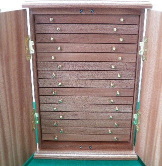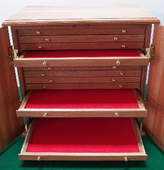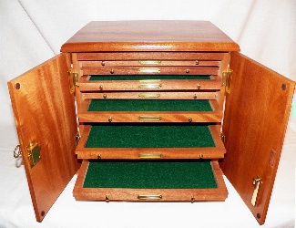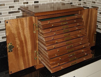 Here is a ten tray "open format" cabinet built for a collector in Singapore. Each tray can hold an item up to