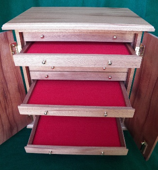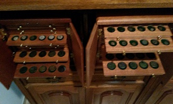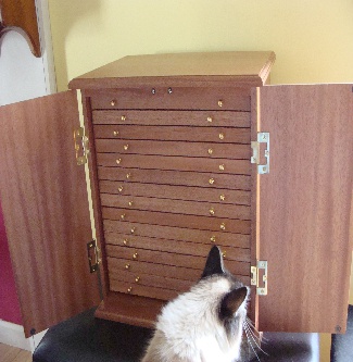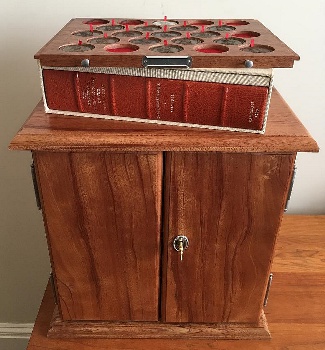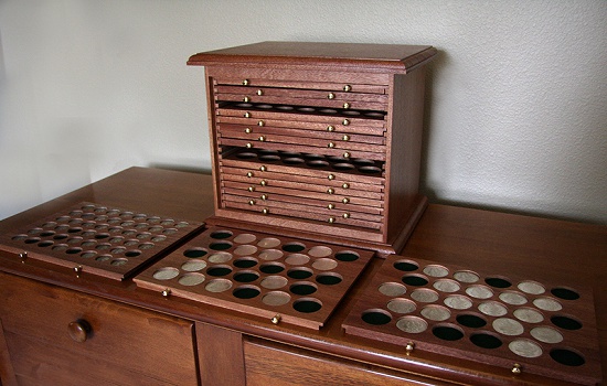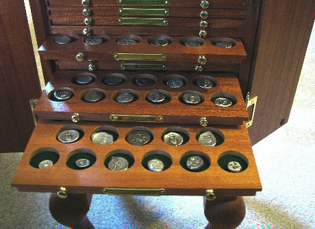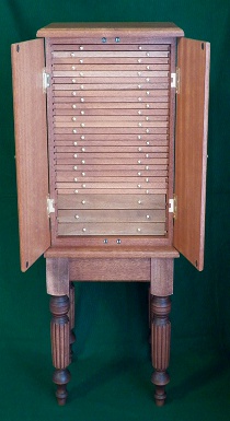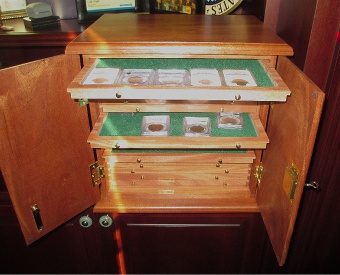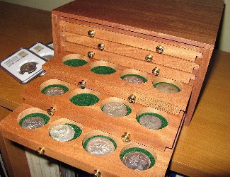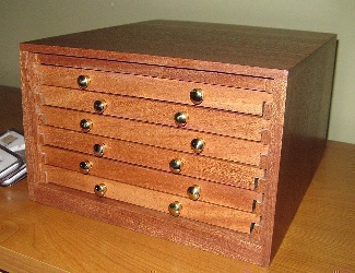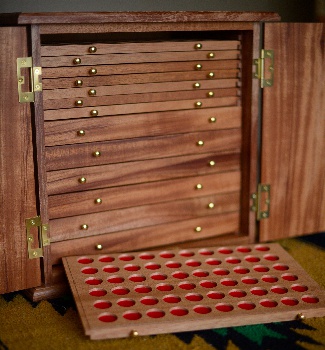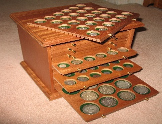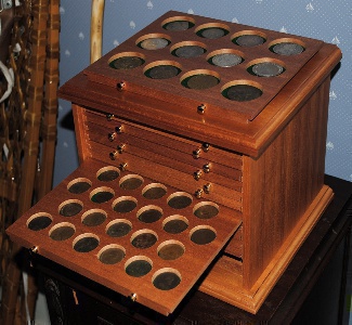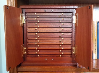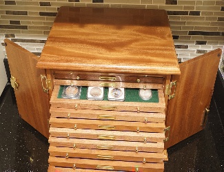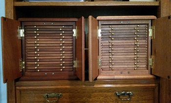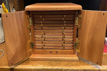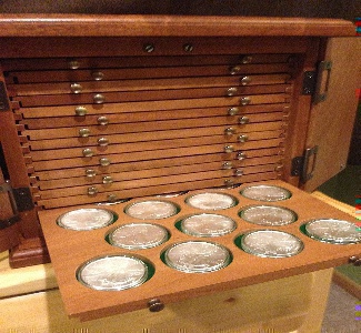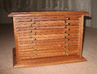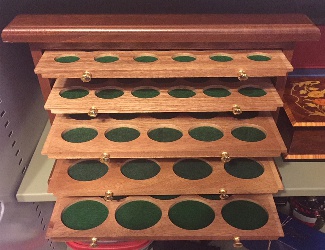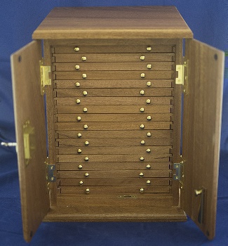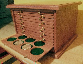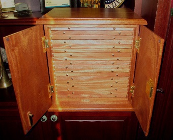 This cabinet was built for a friend who also happens to be a part time coin dealer. It has a total of 24 trays, each 5/8" thick, and