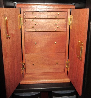 sized items. The grain pattern of the mahogany, visible on the top, sides, trays, and doors was simply outstanding.