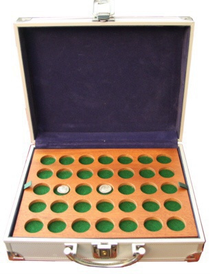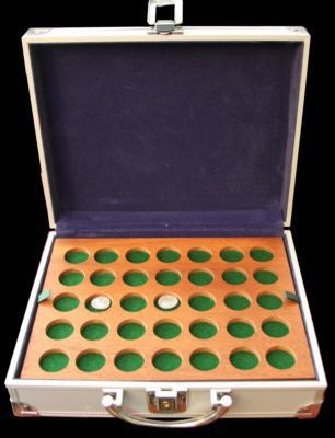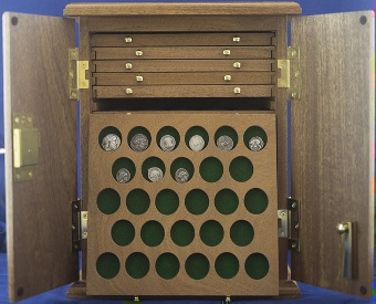 capable of holding 60 slabbed coins. It also has locking doors, and sits on 21" high legs. The first